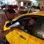 Gençler, Tisin semtindeki ana caddeden geçen araçların sürücüsüne Kur'an-ı Kerim hediye etti.