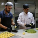 Bayramda misafirlere ikram edilmek üzere cevizli ve fıstıklı olarak hazırlanan Kilis'e özgü gerebiç, ustalar tarafından özenle hazırlanıyor.