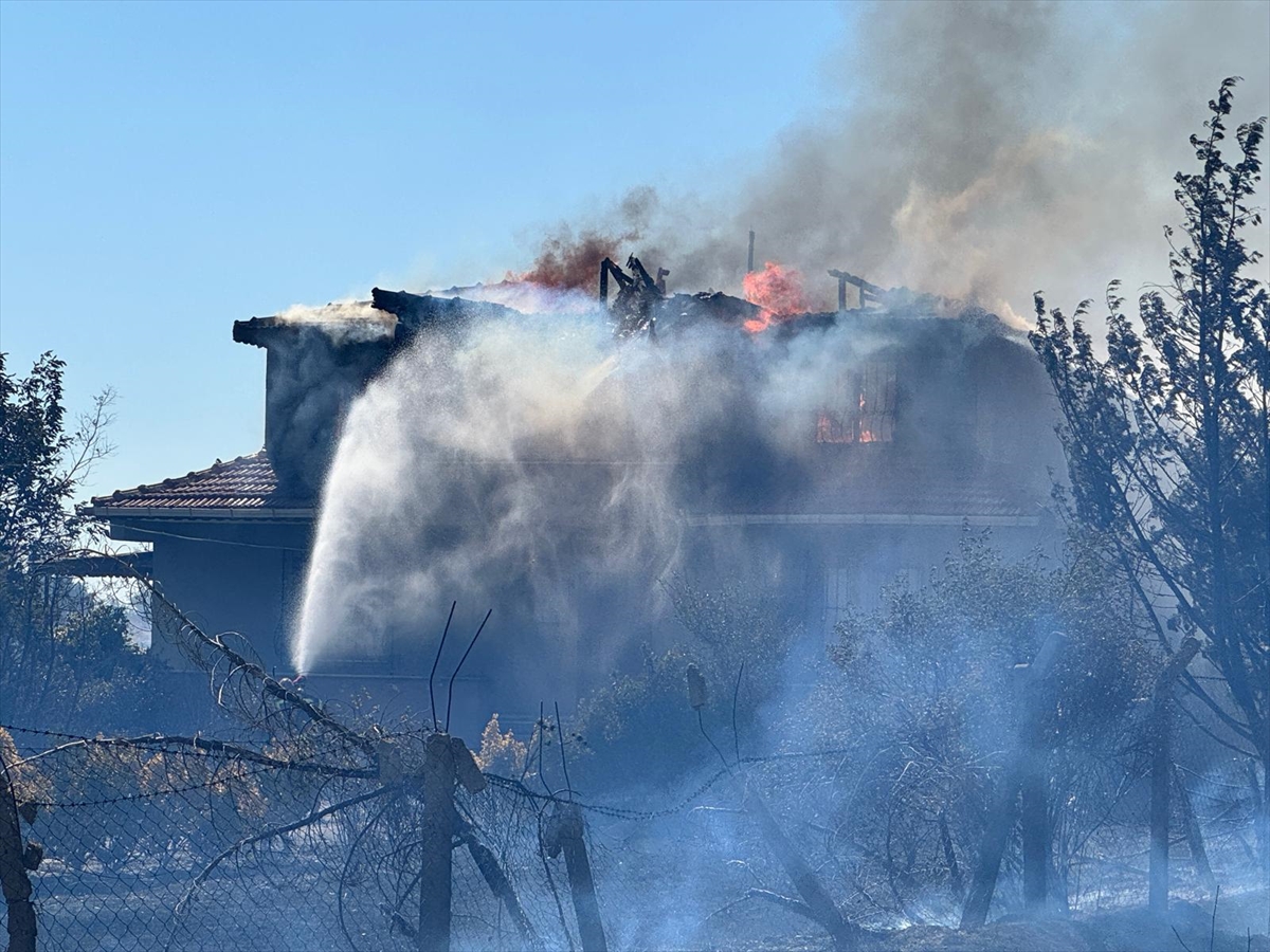 Tarım arazisi, ormanlık alan ve köydeki iki katlı bir evde devam eden yangına müdahale ediliyor.