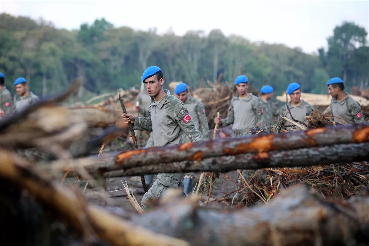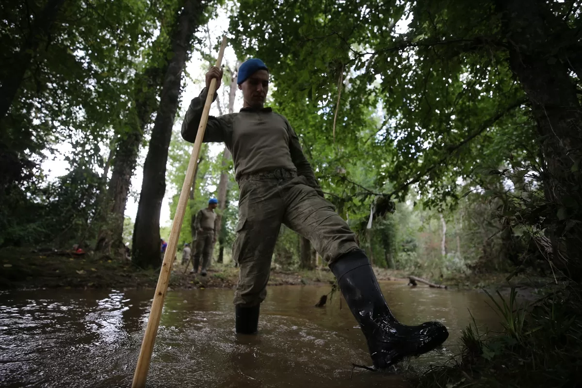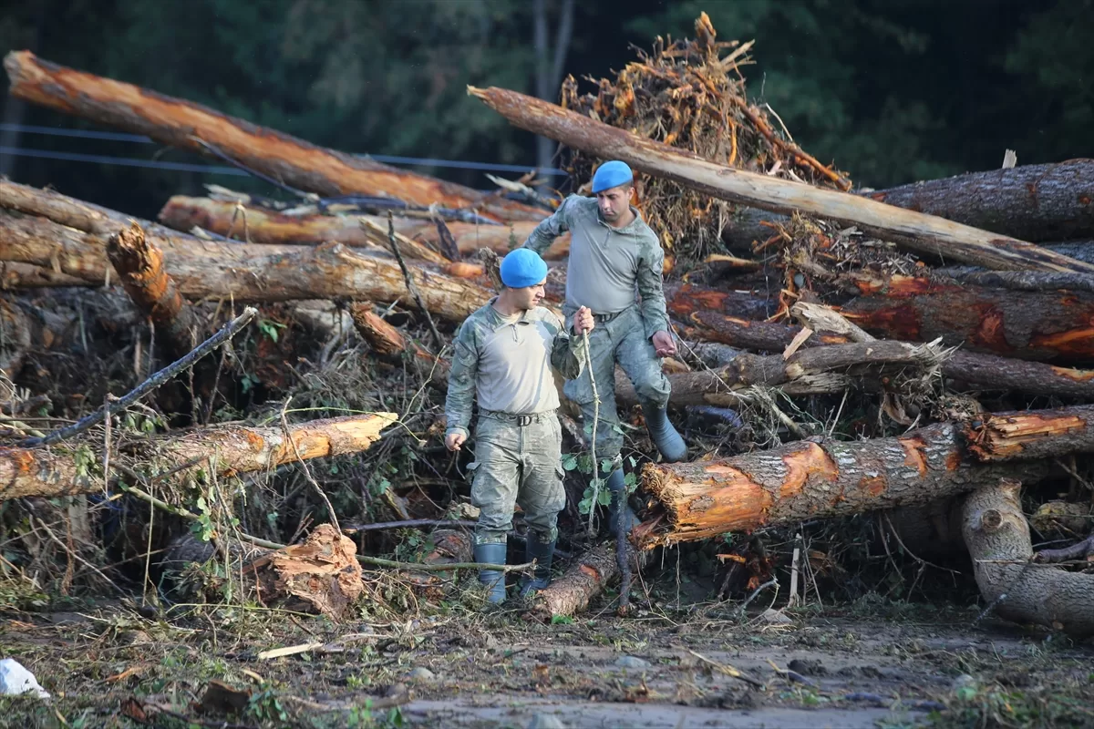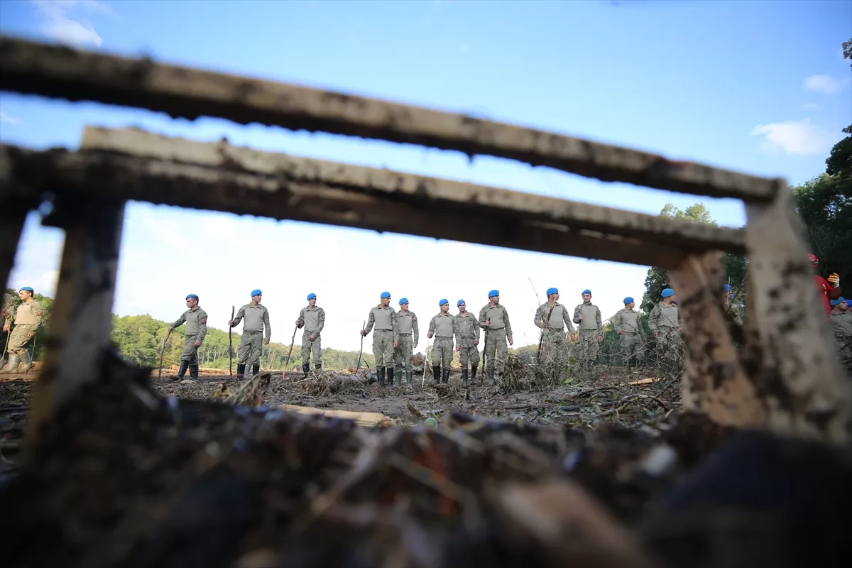Arama kurtarma çalışmalarına çok sayıda komando birlikleri de katılıyor. Orman köylüsü selin sürüklediği tomruk ve kütüklerin kaldırılması çalışmalarına yardım ediyor. Arama kurtarma köpekleri de bölgede arama çalışmalarına katılıyor.