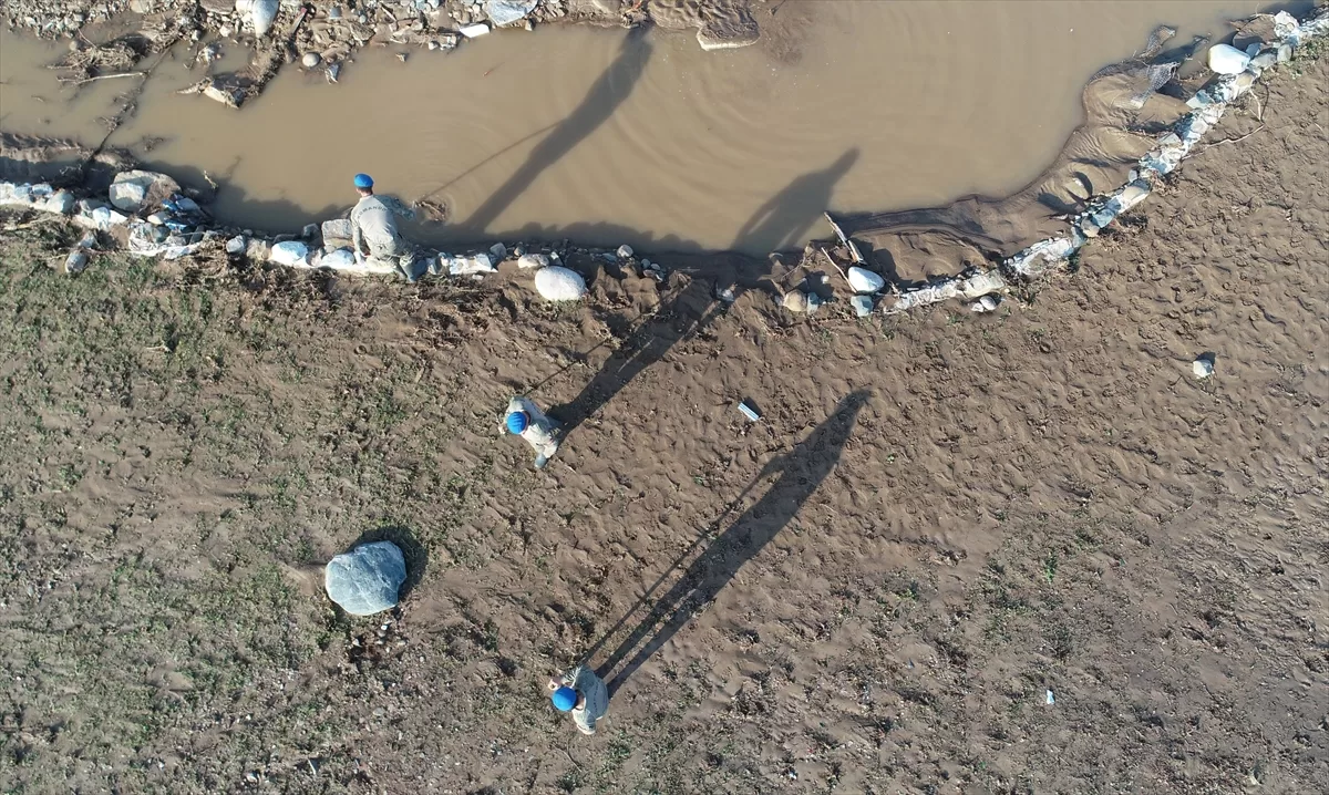 Sisli Vadi mevkisinde suyun çekildiği tesisin bulunduğu alan ve çevresindeki çalışmalarda ekipler, selle gelen tomruk ve ağaçların çevresine ve altlarına bakıyor.