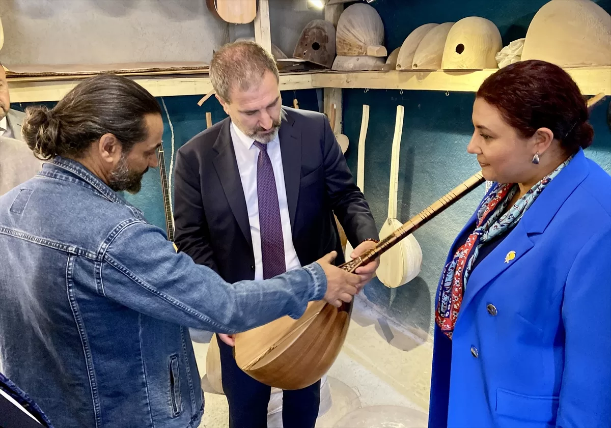 Esnafın Ahilik Haftası'nı kutlayan Şen, tarihi Uzun Çarşı'da bir bağlama atölyesini gezdi.