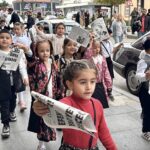 Daha sonra öğrenciler, "yazıyor, yazıyor" şeklinde seslenerek gazeteyi dağıttı.