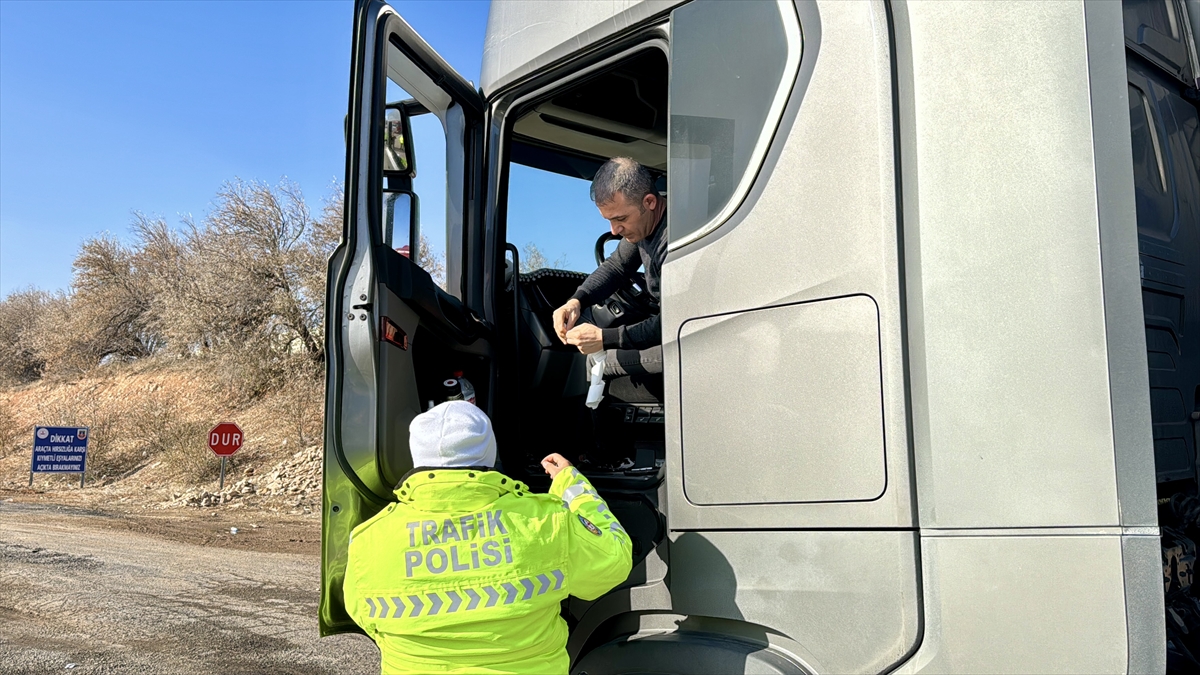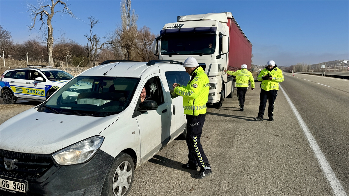 İl Emniyet Müdürlüğü ekipleri, günde ortalama 15 bin aracın geçtiği Ankara-Kayseri kara yolunun Kırşehir aksını kapsayan güzergahta ve Mucur ilçe girişinde oluşturulan denetim noktasında şehirler arası yük ve yolcu taşıyan araçların kış lastiklerini kontrol etti.