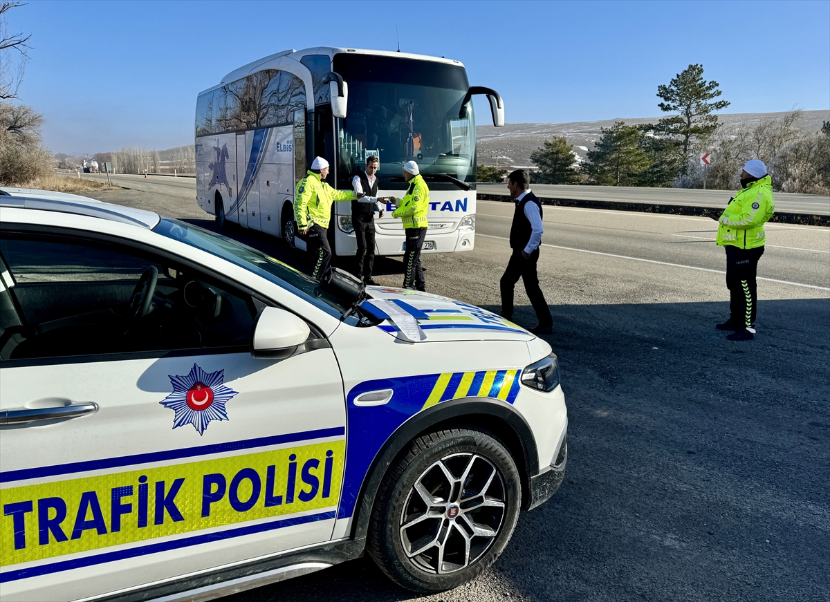 Öte yandan ekipler, kış lastiği denetimi yaptıkları otobüslerdeki yolculara seyir halindeyken emniyet kemeri takmaları uyarısında bulundu.