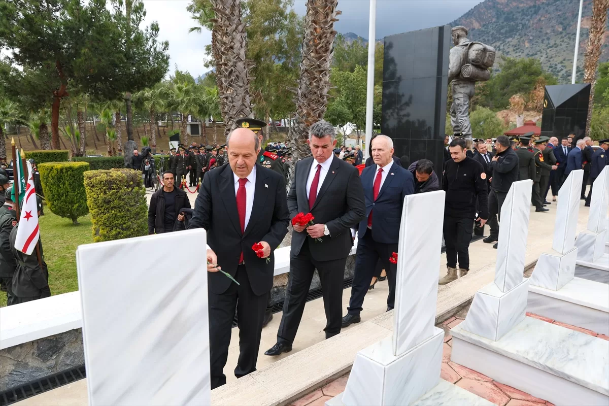 Girne'deki Boğaz Şehitliği'nde düzenlenen törene, Cumhurbaşkanı Ersin Tatar, Cumhuriyet Meclisi Başkanı Zorlu Töre, Başbakan Ünal Üstel, Başbakan Yardımcısı Fikri Ataoğlu, eski KKTC Cumhurbaşkanı Mehmet Ali Talat, Türkiye'nin Lefkoşa Büyükelçisi Metin Feyzioğlu, Kıbrıs Türk Barış Kuvvetleri (KTBK) Komutanı Tümgeneral Sebahattin Kılınç, Güvenlik Kuvvetleri Komutanı (GKK) Tümgeneral Osman Aytaç, ana muhalefetteki Cumhuriyetçi Türk Partisi (CTP) Genel Başkanı Tufan Erhürman'ın yanı sıra siyasi parti, kurum, kuruluş, dernek, üniversite temsilcileri ve askeri erkan katıldı.