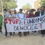KKTC vatandaşları ve ülkede öğrenim gören yabancı uyruklu öğrenciler Filistin'e destek amacıyla düzenledikleri eylemde, "Filistin'e Özgürlük", "Soykırıma Hayır", "Nehir'den Denize Özgür Filistin", "Katil İsrail Filistin'den Defol" sloganları attı.