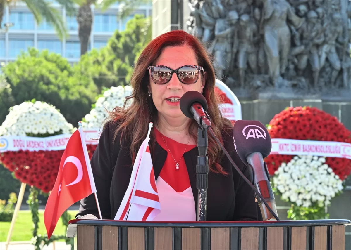 Cumhuriyet Meydanı'ndaki törene İzmir Vali Yardımcısı Hulusi Doğan ve KKTC İzmir Başkonsolosu Ayşen Volkan İnanıroğlu'nun yanı sıra askeri erkan ile çeşitli kurumlardan temsilciler katıldı.