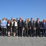Atatürk Anıtı'na çelenk sunumu ile başlayan törende saygı duruşunda bulunuldu, İstiklal Marşı okundu.