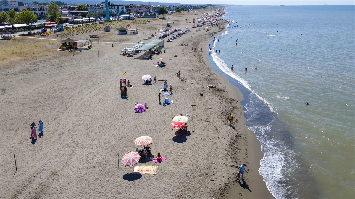 Tatil dolayısıyla ilçeyi tercih eden ziyaretçiler, plajlarda yoğunluk oluşturdu.