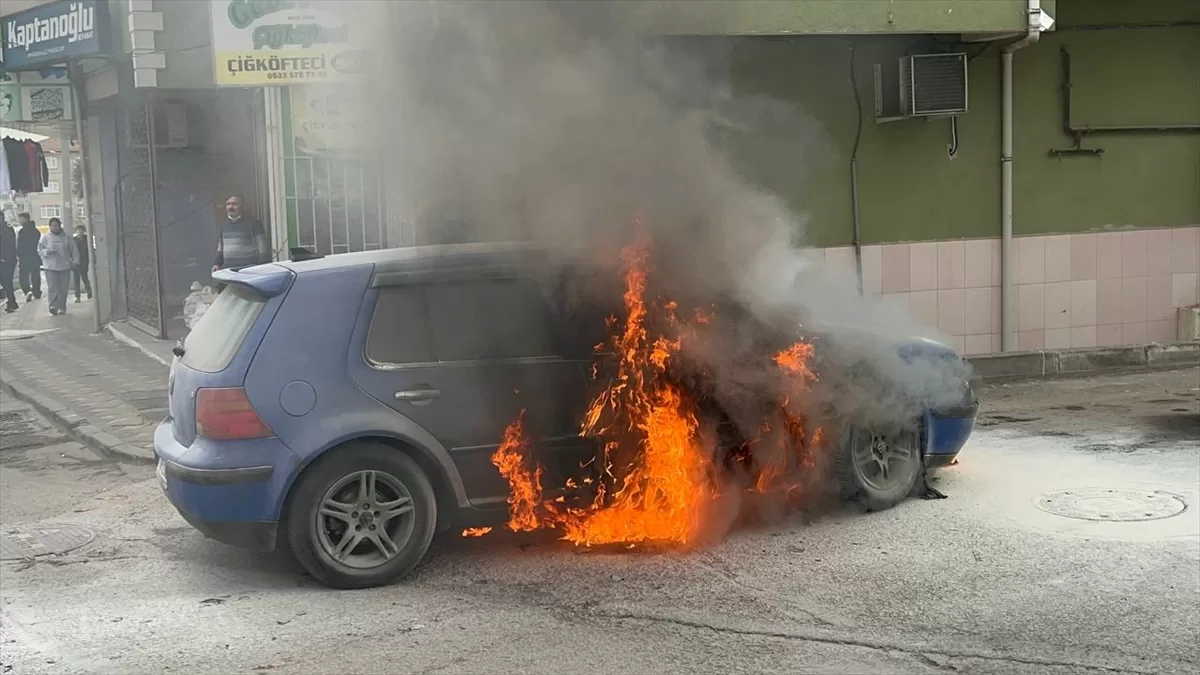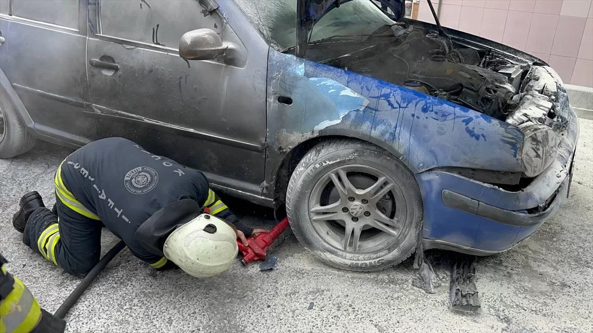 Aksu'nun durumu kontrol etmek için araçtan inmeye çalıştığı sırada otomobil alev aldı.