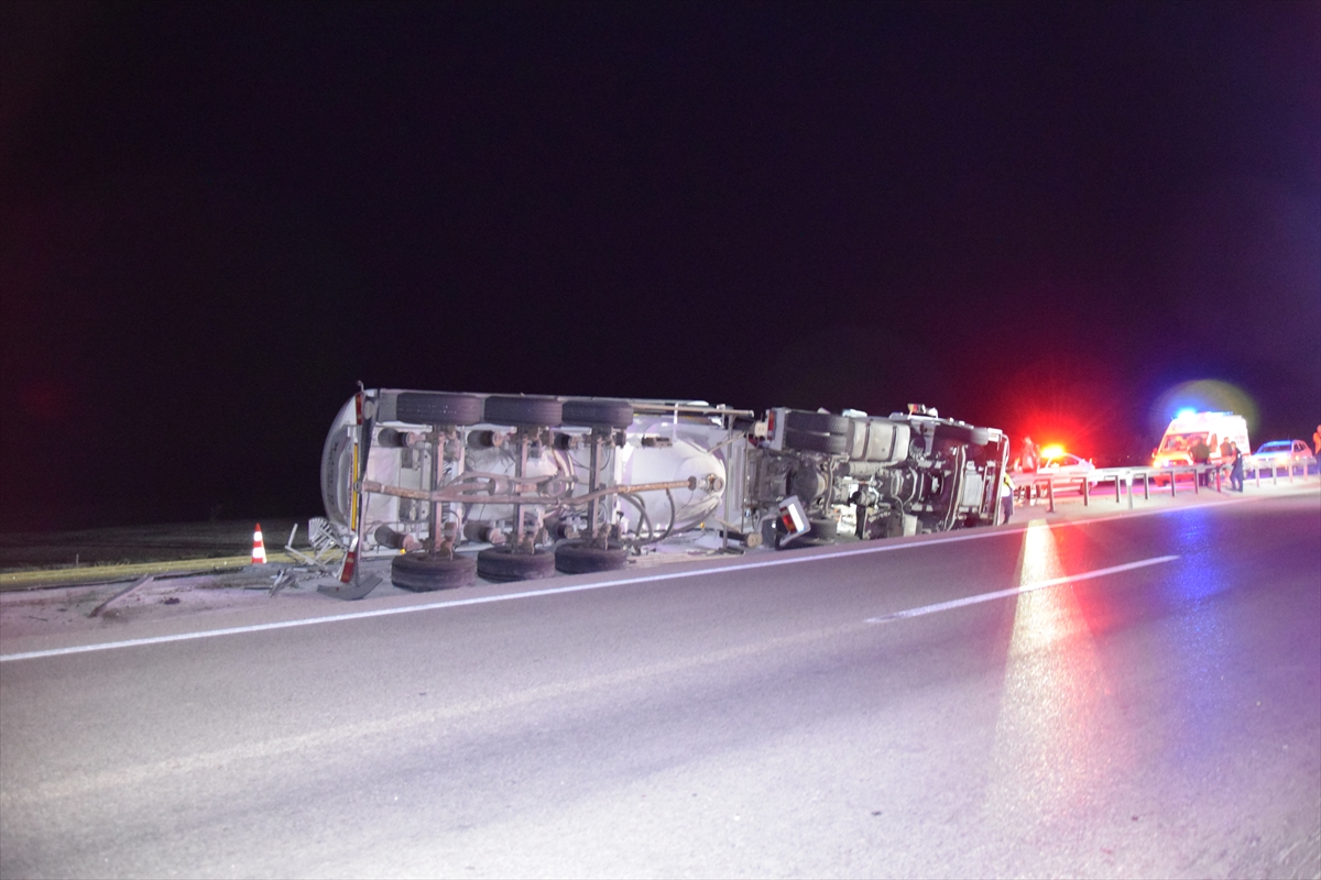 Aşır Ekinci (66) idaresindeki 06 SCE 55 plakalı tır, Ankara-Konya kara yolunun 128. kilometresinde bariyerlere çarparak devrildi.