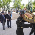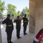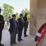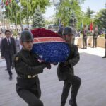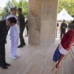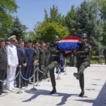 Saygı duruşu ve iki ülkenin milli marşlarının çalınmasıyla başlayan törende, anıta çelenkler konuldu.