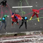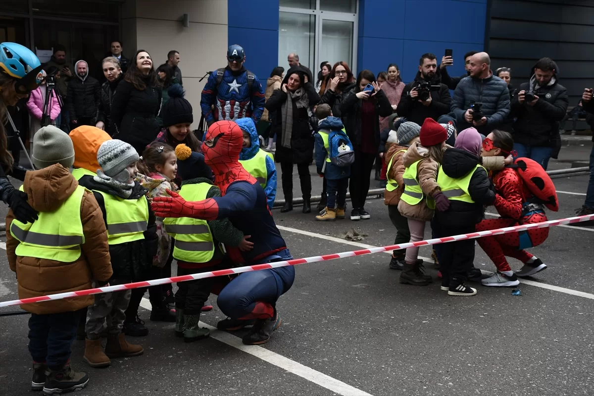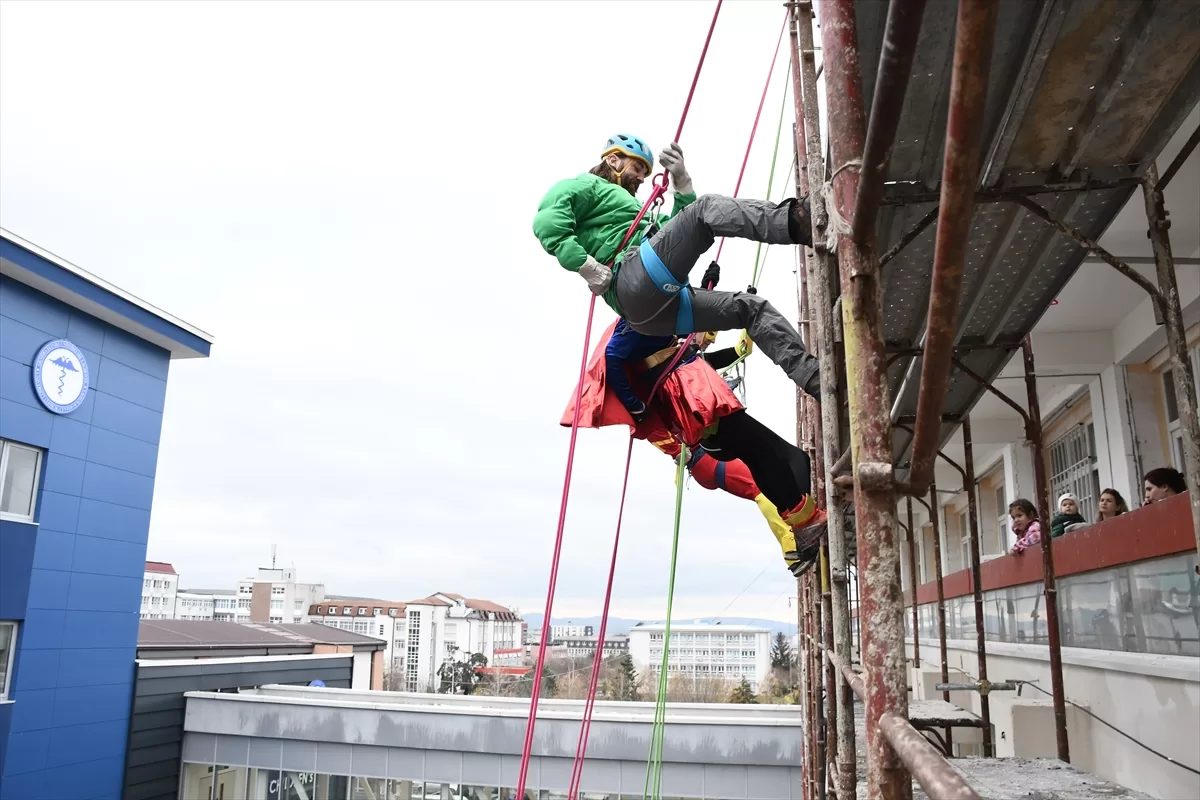 PRİŞTİNE (AA) – Kosova'nın başkenti Priştine'de süper kahramanların kostümlerini giyen bir grup dağcı, Kosova Üniversitesi Klinik Merkezinin (QKUK) çatısından halatla inerek burada tedavi gören çocuklara pencere ve balkonlardan hediyeler dağıttı.