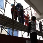 Yaklaşan yılbaşı dolayısıyla QKUK'un Pediatri Kliniğinde tedavi gören çocukları sevindirmek için düzenlenen etkinlik kapsamında süper kahraman kostümleri giyen "Klubi Alpin Prishtina" topluluğu üyesi dağcılar, çatıda kurulan düzenek sayesinde binadan halatla indi.