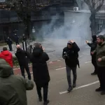 UÇK Gazi Örgütü Başkan Vekili Faton Klinaku’nun yaptığı konuşmanın ardından, Kosova Sosyal Demokrat Partisi (PSD) aktivistleri tarafından otelin girişine sis bombaları atıldı.