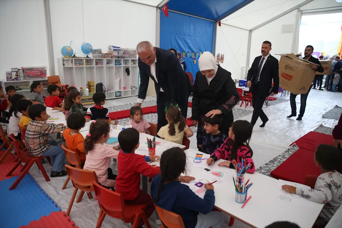 Daha sonra Malatya-Elazığ kara yolunda Kültür ve Turizm Bakanlığı tarafından kurulan konteyner kenti gezen Ersoy, sinema tırında film izlemek üzere toplanan çocuklara oyuncak dağıttı.