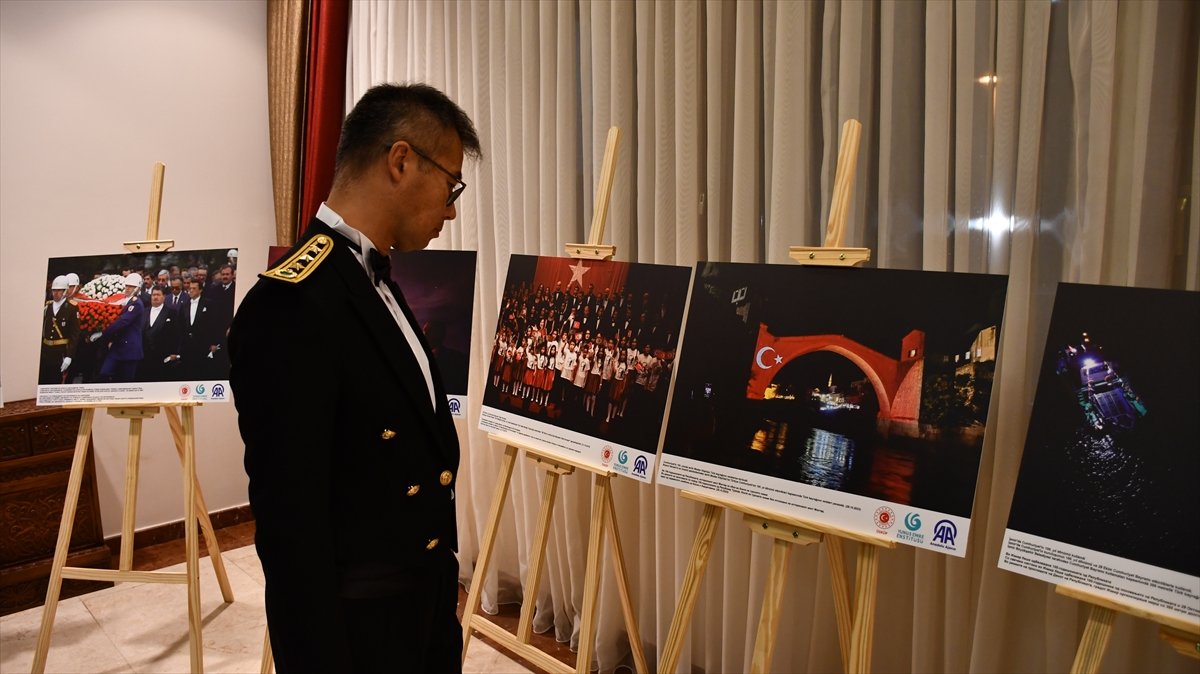 Resepsiyon kapsamında Yunus Emre Enstitüsü ile AA işbirliğinde, geçen yıllara ait Cumhuriyet Bayramı kutlamalarının AA foto muhabirleri tarafından çekilen fotoğraflarından oluşan sergi konukların ilgisine sunuldu.