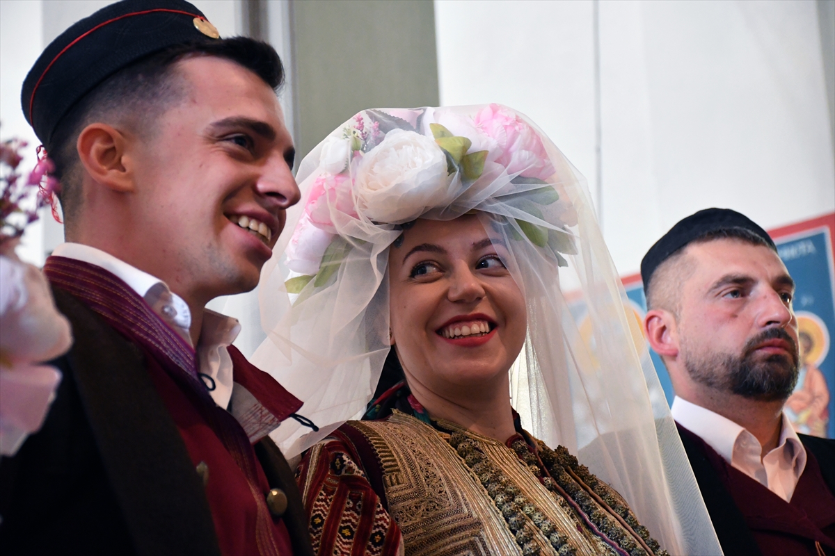 Kuzey Makedonya'nın farklı bölgelerinden ve yurt dışından gelen çok sayıda ziyaretçi, gelin ve damadın geleneksel adetlere göre evlendiği bu özel törene tanıklık etti.
