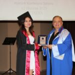 Dereceye giren öğrencilere plaketlerinin takdim edildiği törende, Gerontoloji Bölümü binasının bağışçısı merhum İbrahim Şencan'ın kızı Burcu Aksoy ise bu bölümde dereceye giren öğrencilere Cumhuriyet altını hediye etti.