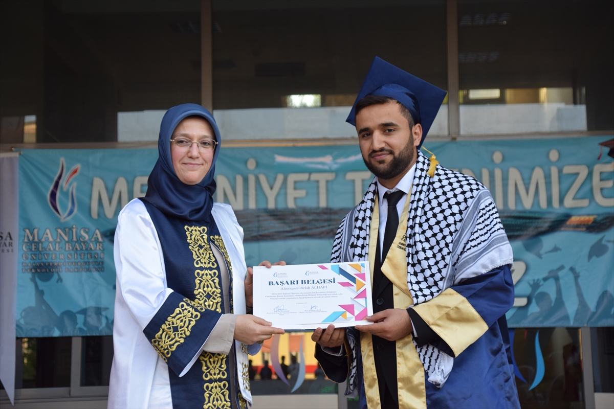 Törende konuşan Rektör Kibar, Alhafi'nin bölümünü birincilikle tamamlamasının gurur verici olduğunu belirterek, "Filistinli öğrencimiz, 'Ailemin de yanımda olmasını çok isterdim.' dedi. İnşallah bundan sonrasında yaşamının kalan kısmında ailen hep yanında olur. Bugün burada kocaman bir ailen var, bizler senin her zaman yanındayız. 2023 yılı ekim ayında Filistin'de, özellikle Gazze'de başlayan ve devam eden bu vahşetin bir an önce sona ermesini Rabb'imden niyaz ediyoruz." ifadelerini kullandı.
