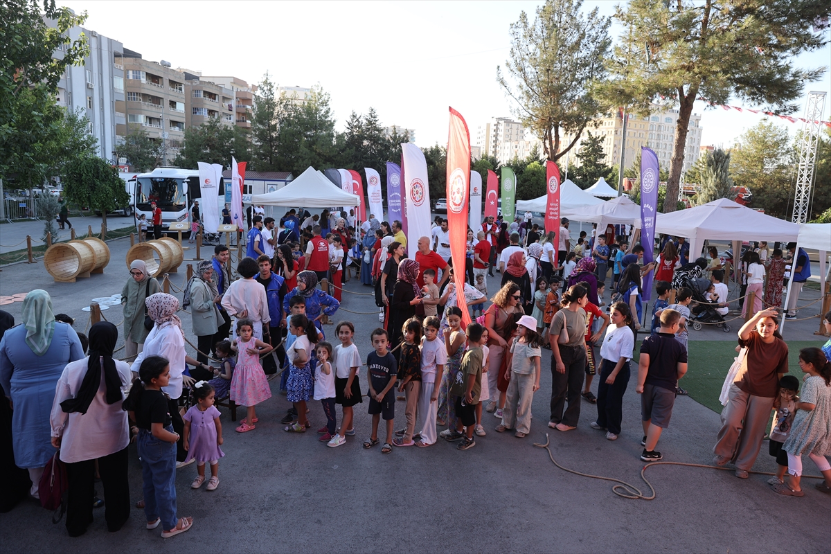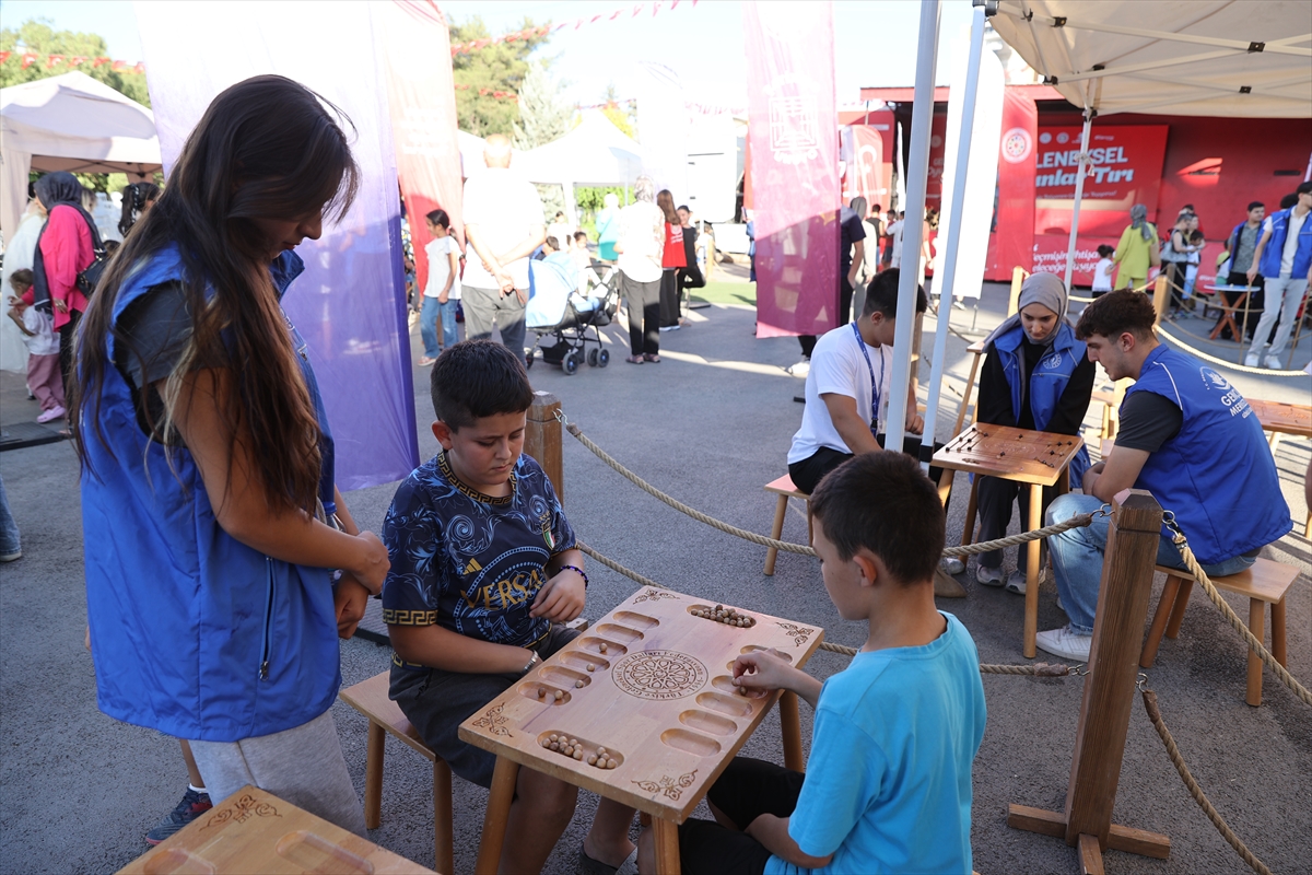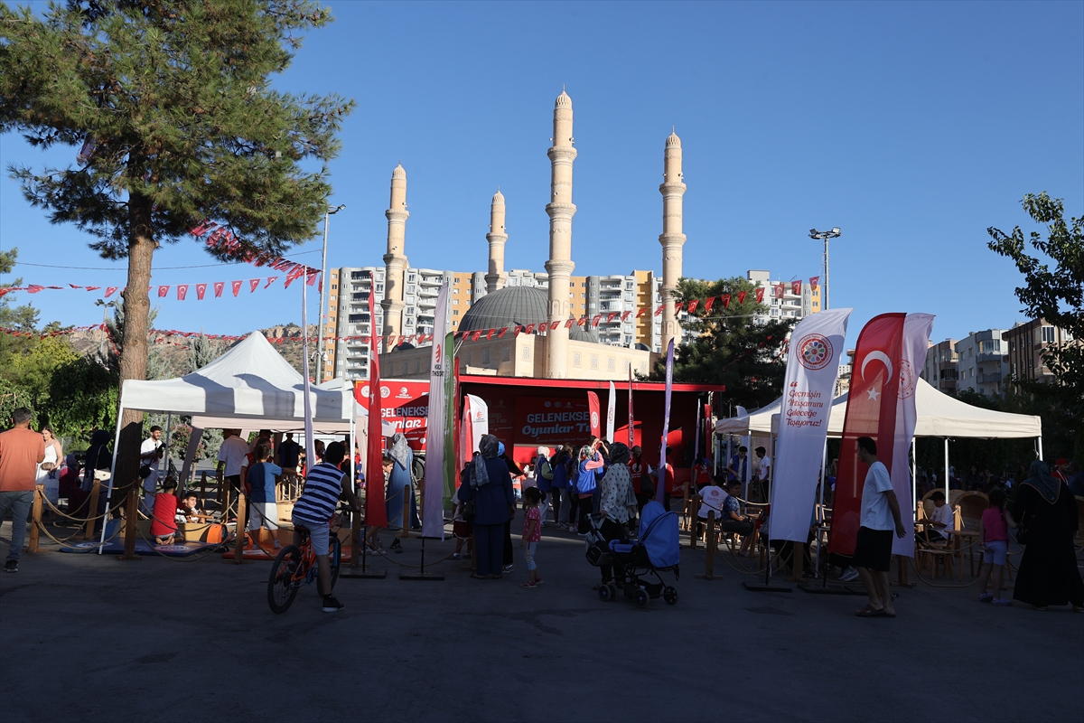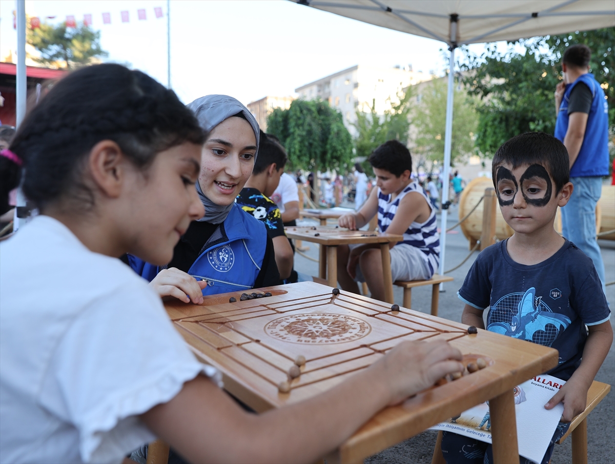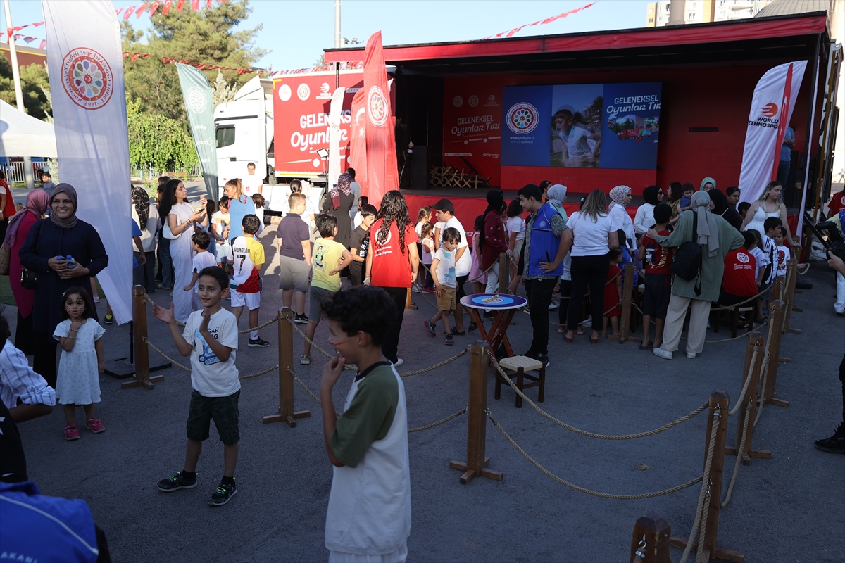 Merkez Artuklu ilçesindeki 15 Temmuz Demokrasi ve Şehitler Parkı'nda konuşlandırılan tırdaki etkinliklerle çocuklar unutulmaya yüz tutmuş geleneksel oyunları oynama fırsatı buldu.