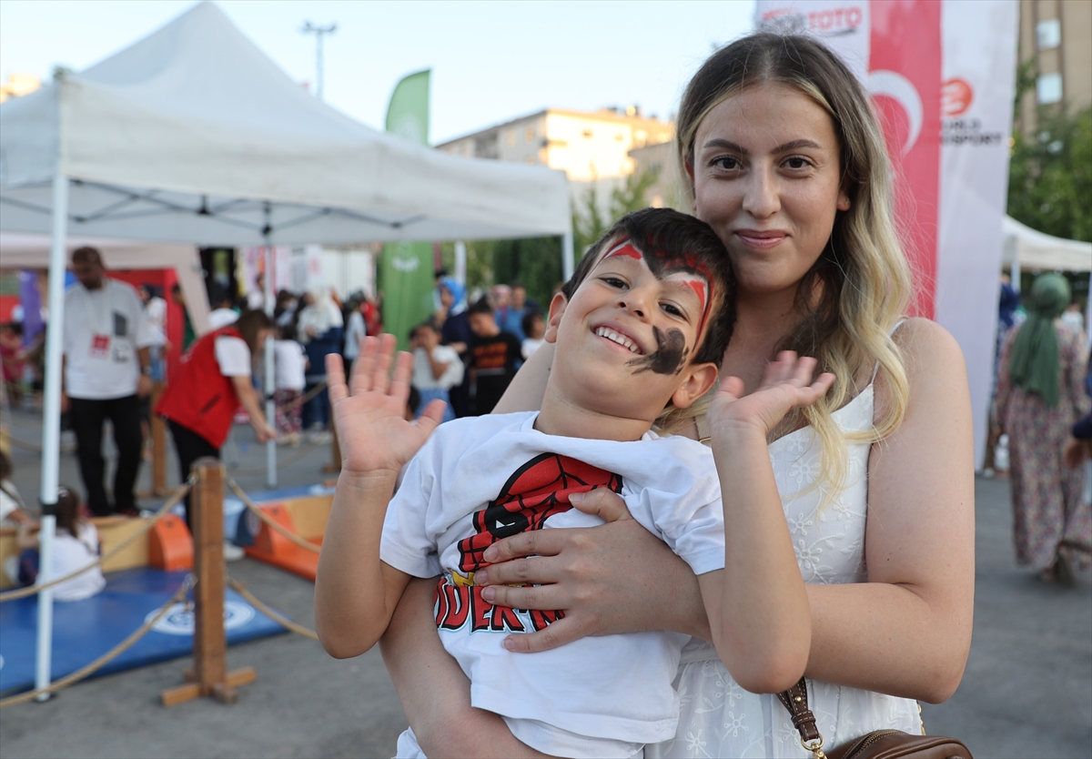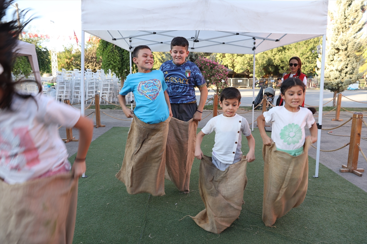 Parkurda yer alan halat çekme, koca ayak, mangala, çember çevirme ve masa güreşi gibi oyunları deneyimleyen çocuklar doyasıya eğlendi.