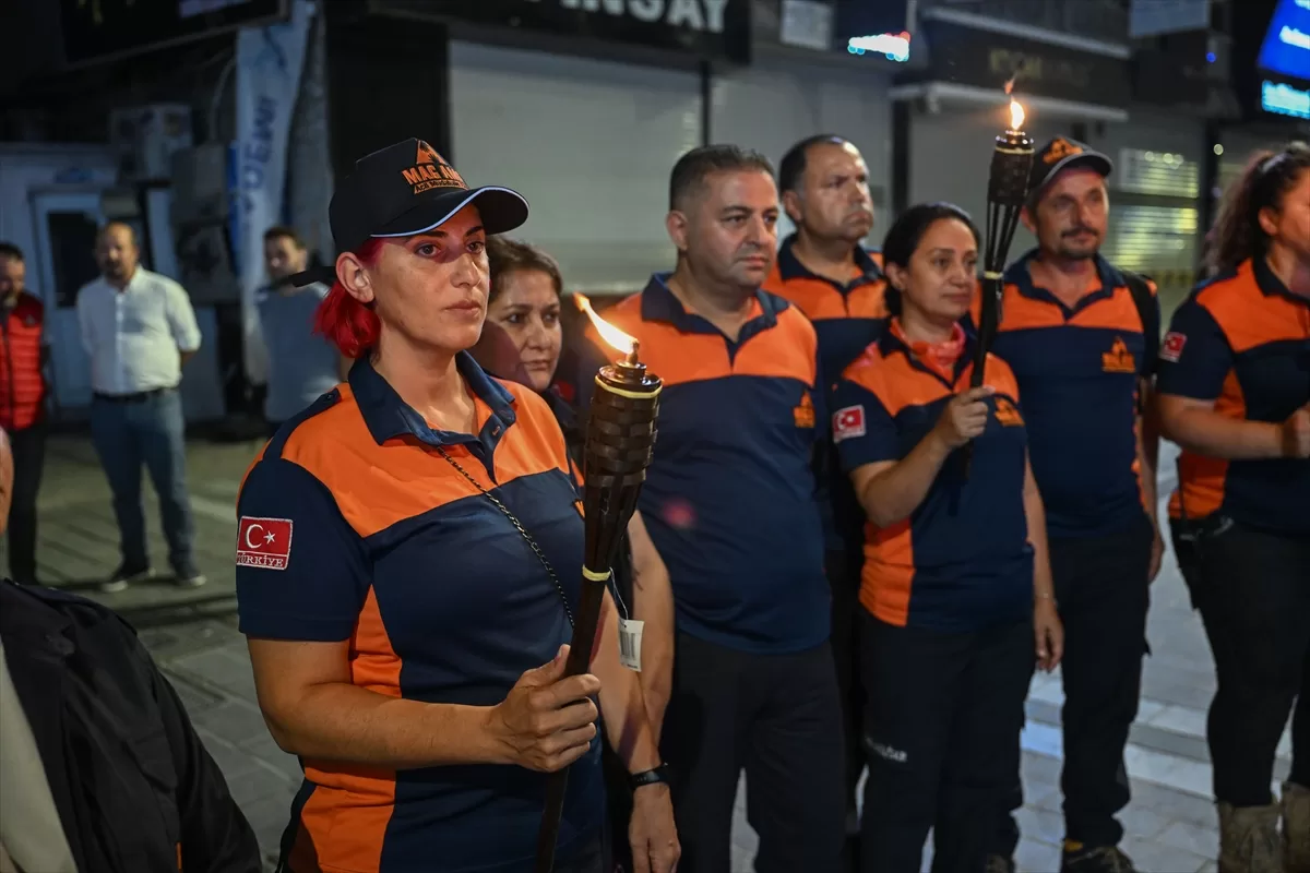 Açıklamaların ardından grup, meşale yakarak deprem anıtı önüne karanfil bıraktı.