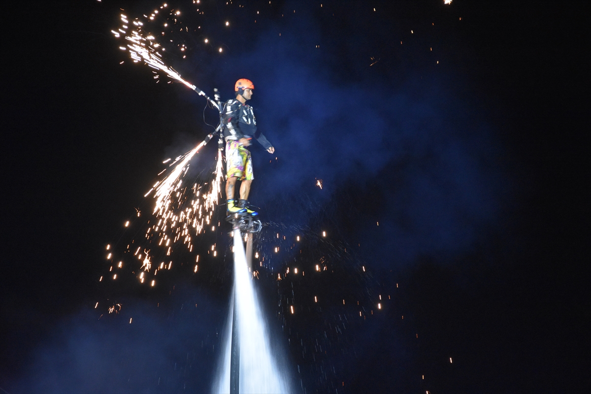 Etkinlik sırasında Marmaris Su Sporları Merkezi sporcuları gösteri yaptı.