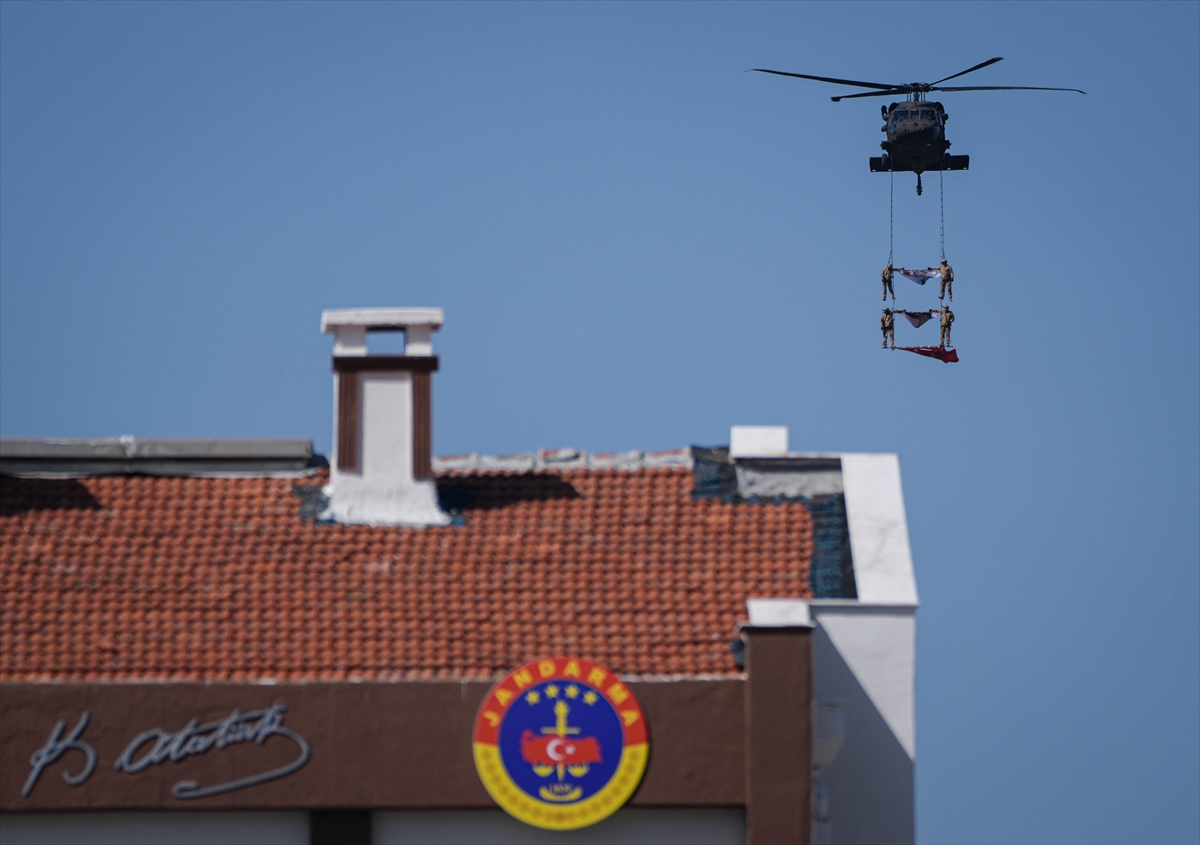 Etkinlikte jandarma ekiplerince "üzüm salkımı", "paraşütle 10 bin feetten atlama", "kuleden iniş", köpekli özel asayiş" ve "tüfekli hareketler" gösterisi sunuldu.