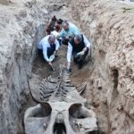 MERSİN (AA) – Mersin'de 2021'de sahile vurduktan sonra gömülen 14 metrelik Fin balinası iskeletinin bilimsel çalışmalarda kullanılmak üzere topraktan çıkarılma işlemi sürüyor.