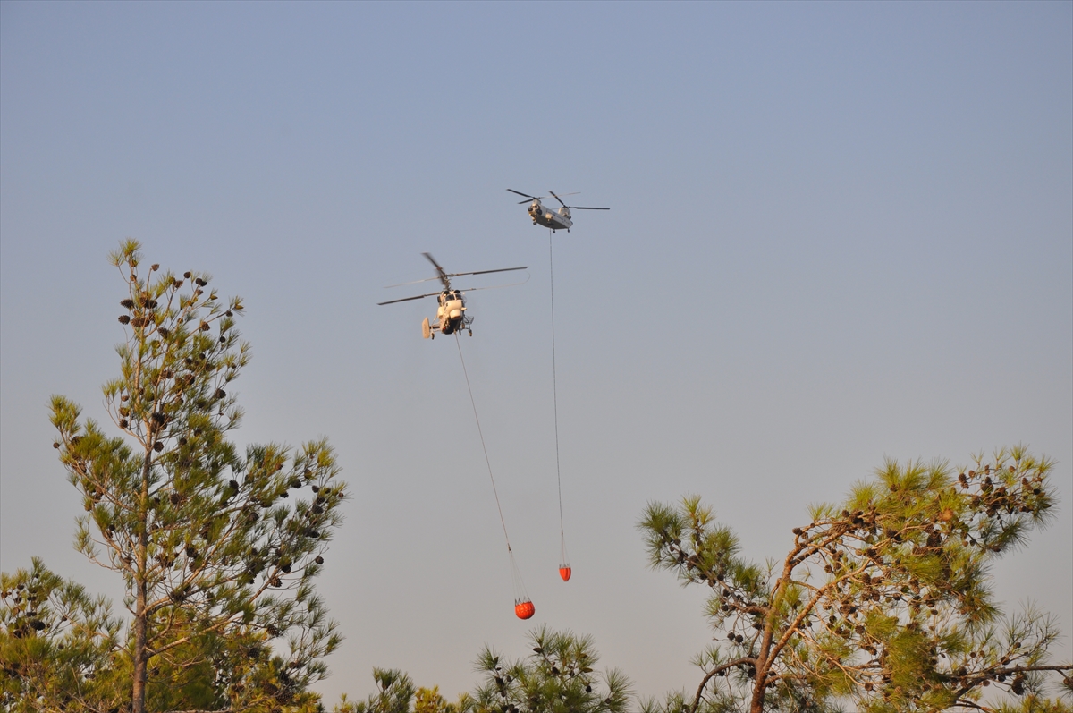Çadırlı Mahallesi'ndeki ormanlık alanın 3 noktasında dün henüz belirlenemeyen nedenle yangın çıkmış, alevlere 8 helikopter, 4 yangın söndürme uçağı, 110 kara aracı ve 526 personele müdahale edilmişti.
