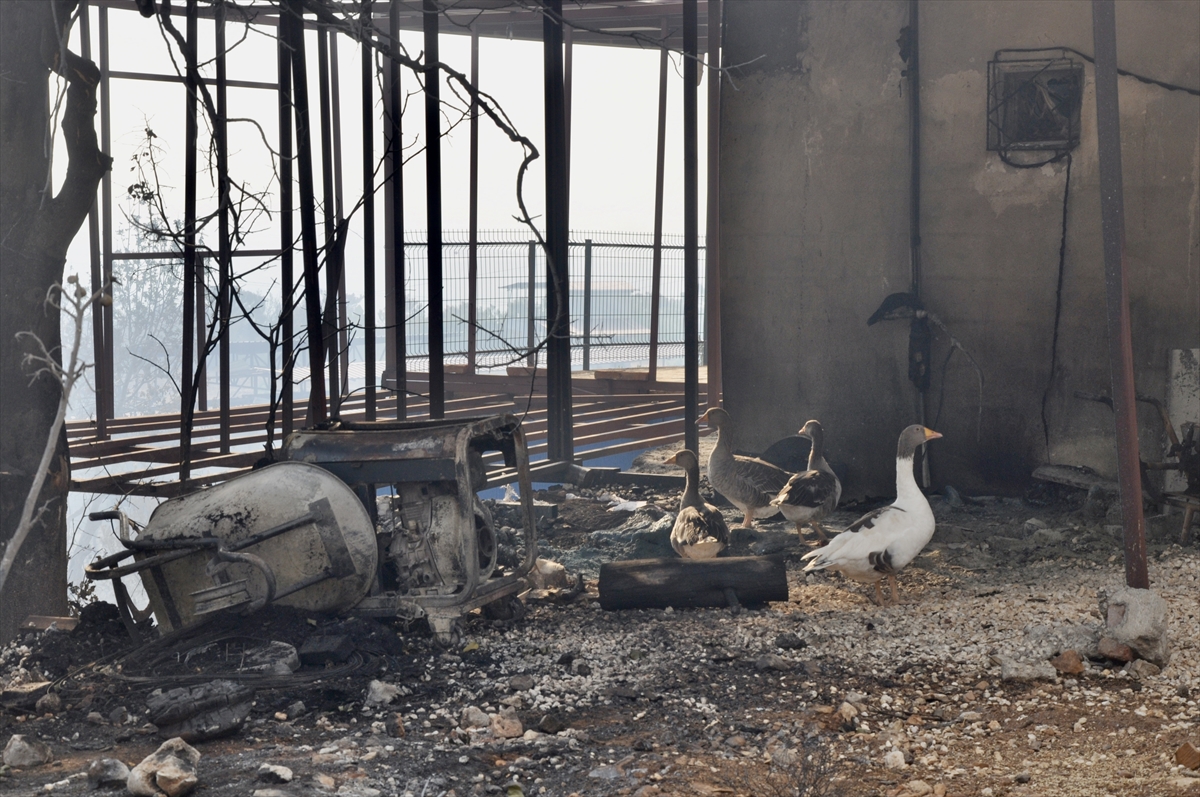 Vatandaşlardan Mehmet Eser, gazetecilere, Bahçederesi Mahallesi'ndeki ev ve bahçesinin yandığını, 25 kümes hayvanının da telef olduğunu söyledi.