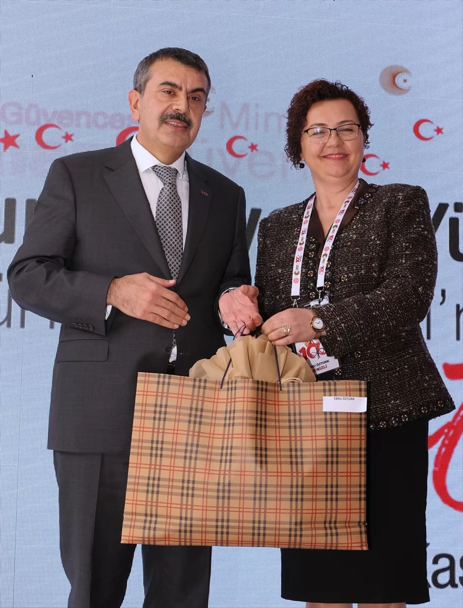 Bakan Tekin, 81 ilden gelen öğretmenleri temsilen Ebru Öztürk, Nuri Arıcı, Orhan Güleșce, Volkan Kaya ve Sümeyra Temizhan'a hediye takdim etti.