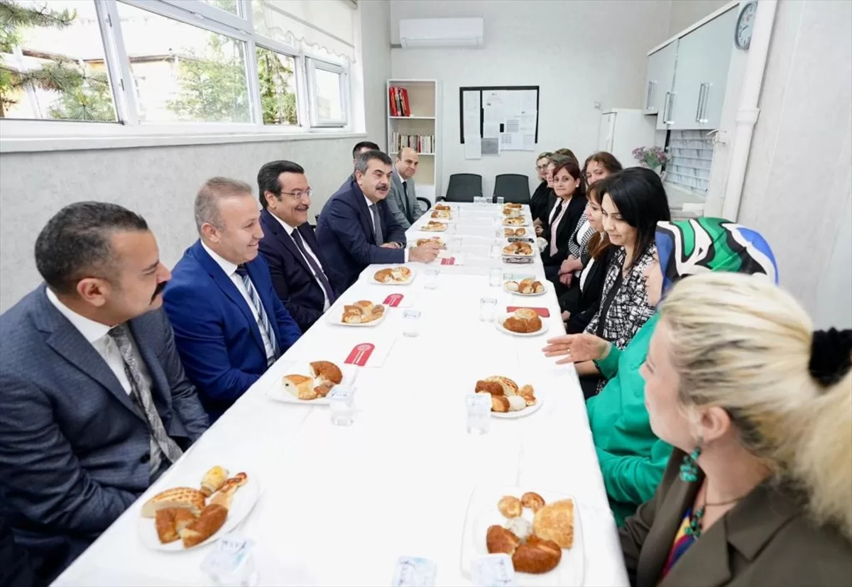 Milli Eğitim Bakanlığından yapılan açıklamaya göre Tekin, ziyareti kapsamında ilk olarak öğretmenler odasında eğitimcilerle görüştü.