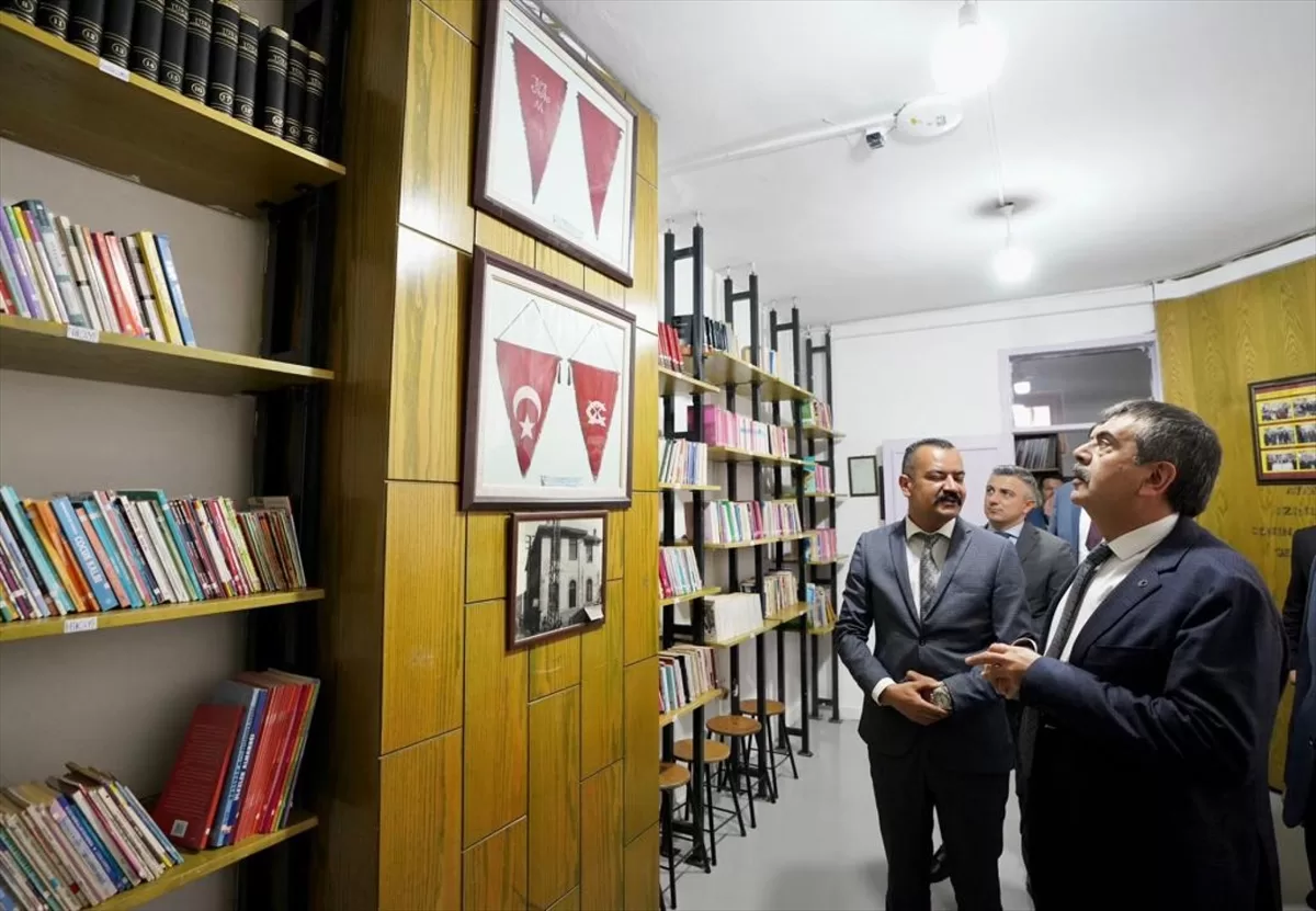 Daha sonra sınıfları gezerek öğrencilerle sohbet eden Bakan Tekin, ardından okula ait tarihi kütüphaneyi gezdi, TBMM'nin ilk üyelerinin kullandığı hesap makinesini inceledi.