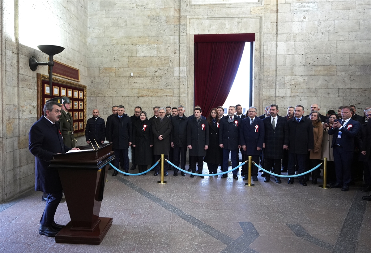 Bakan Tekin'in mozoleye çelenk bırakmasının ardından saygı duruşunda bulunuldu. Beraberindeki bürokratlar ve öğretmenlerle Anıtkabir merdivenlerinde hatıra fotoğrafı çektiren Tekin, daha sonra Misak-ı Milli Kulesi'ne geçerek Anıtkabir Özel Defteri'ni imzaladı.