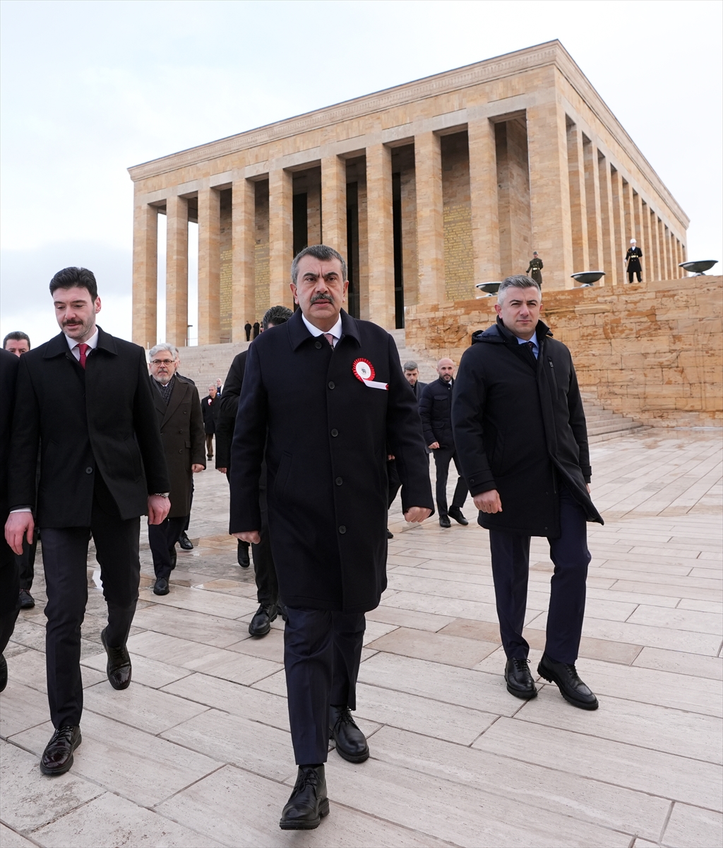 Tekin başkanlığındaki Bakanlık bürokratları ile öğretmenlerden oluşan heyet, Aslanlı Yol'dan yürüyerek Gazi Mustafa Kemal Atatürk'ün mozolesine geldi.