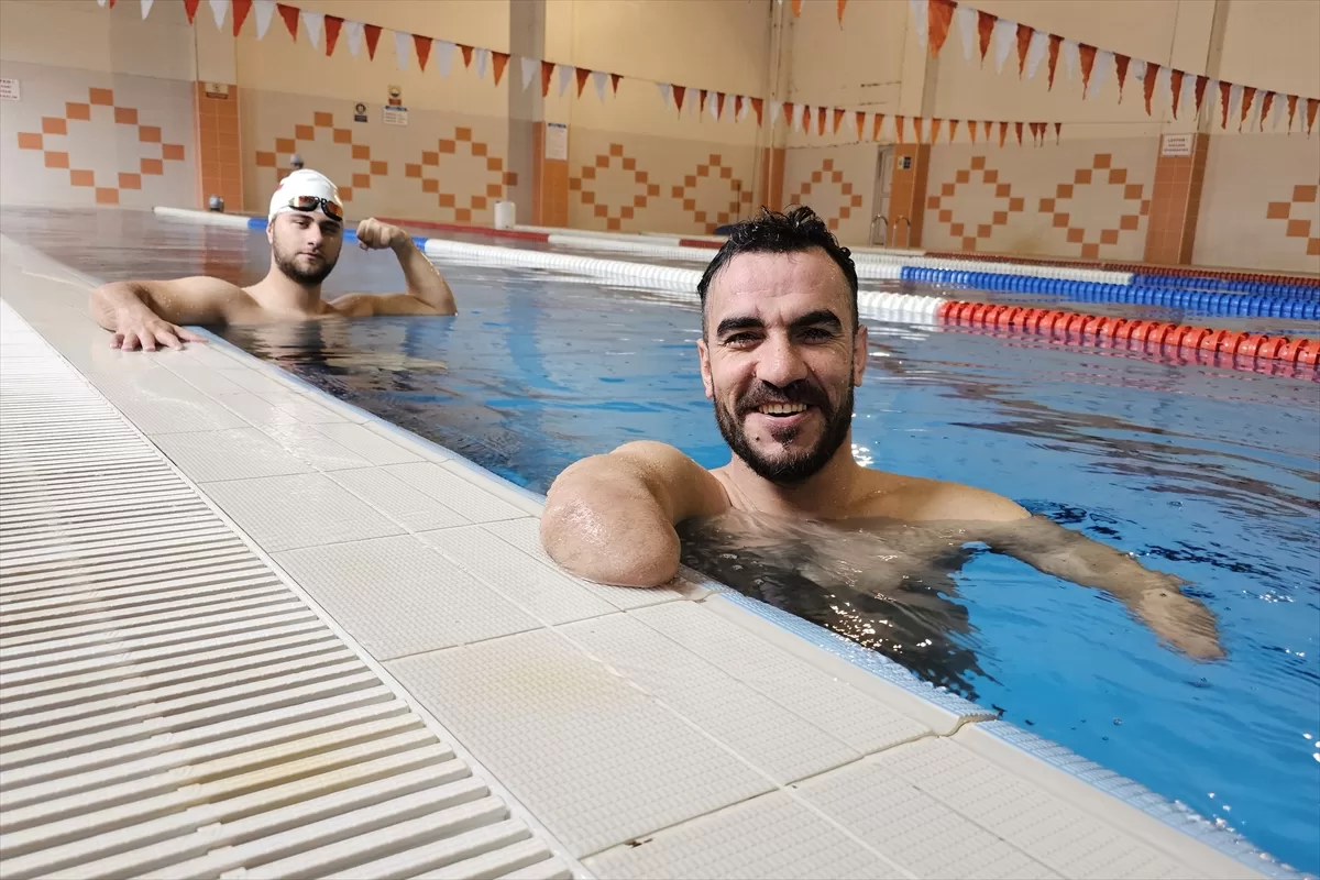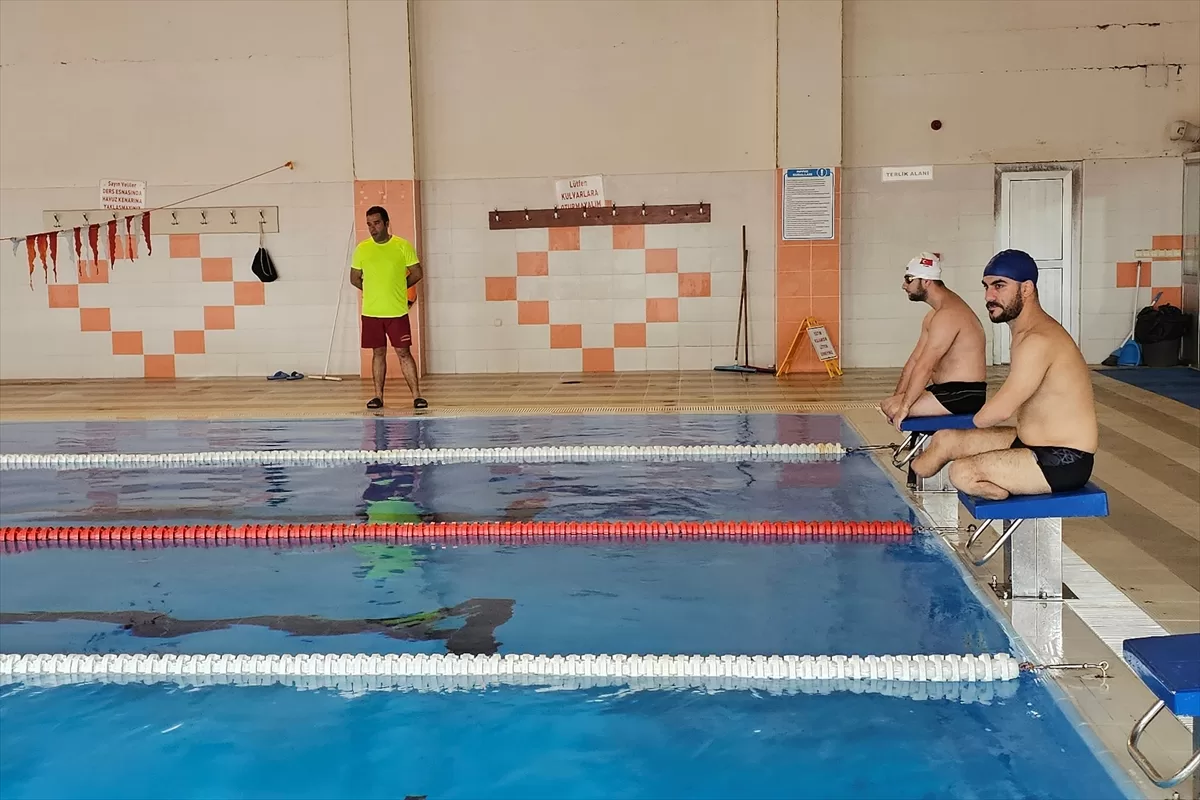 Barajı aşan ve milli takım kampına davet edilen Çağlar ve Erten, kampa Şehit Zafer Kılıç Spor Lisesinin yüzme havuzunda hazırlanıyor.