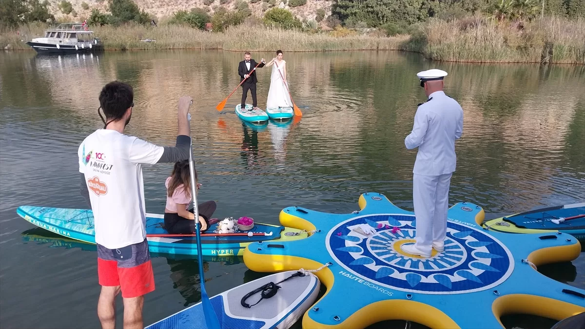 MUĞLA (AA) – Muğla'nın Ortaca ilçesinde deniz ve doğa tutkunu çift için Dalyan Kanalı'nda temsili nikah töreni düzenlendi.