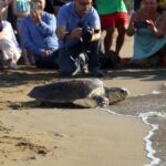 İyileşen deniz kaplumbağalarının doğal ortamına bırakılması için İztuzu Plajı'nda tören düzenlendi.
