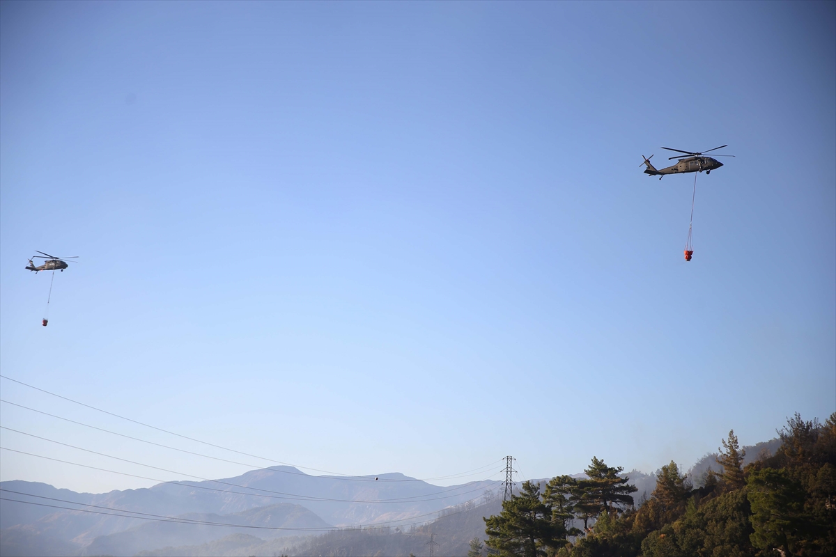 480 personel, 77 araç, 93 arazöz, 17 iş makinesi ve 12 hava aracı yangına müdahale ediyor. Yangınların kontrol altına alınması için civar illerden de destek ekipler geldi. Bölgede şiddetli rüzgar nedeniyle ekipler, alevleri kontrol altına almakta güçlük çekiyor.