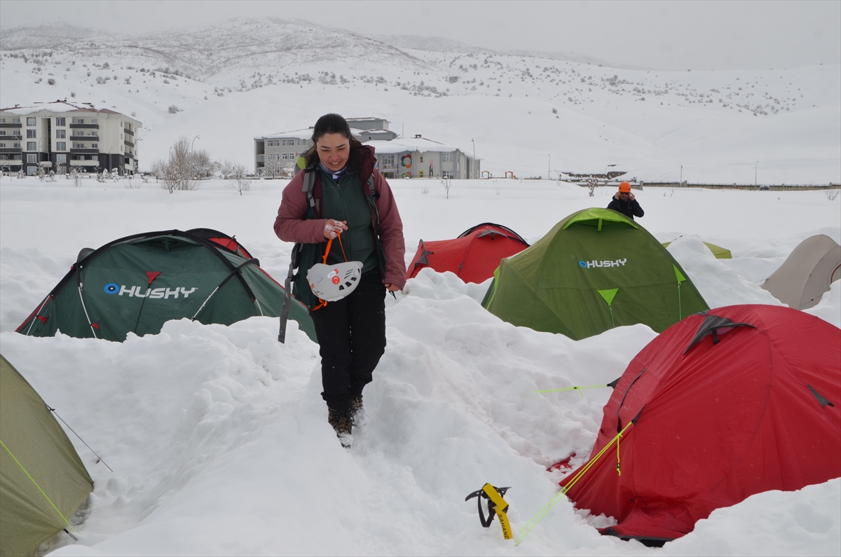Farklı illerden Muş'a gelen 105 dağcı, 17 Şubat'ta başlayan eğitimin ilk aşamasında çadır kurarak teorik derslere katıldı.