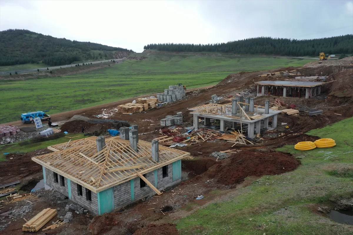 Cumhurbaşkanı Recep Tayyip Erdoğan'ın katılacağı törenle yarın hak sahiplerine verilecek evlerin yapım aşaması, Anadolu Ajansı (AA) ekibince görüntülendi.