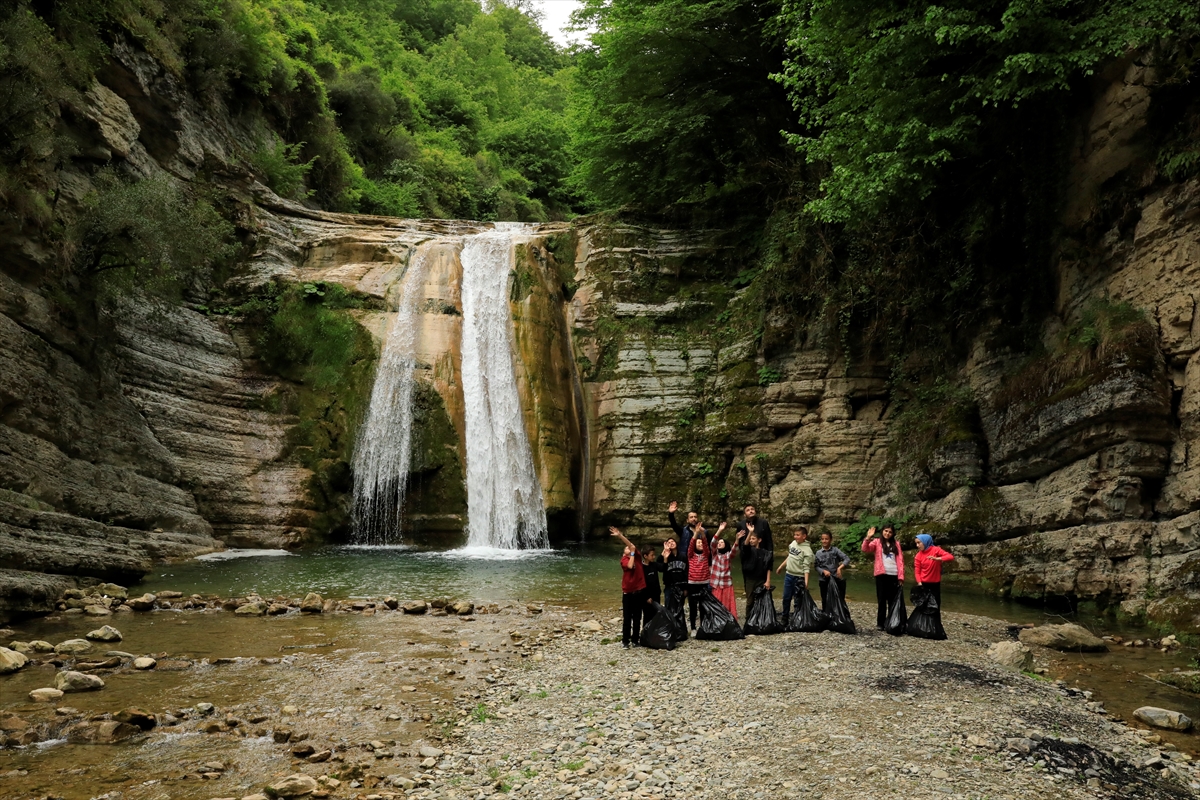 Vatandaşların özellikle pandemi sonrası daha fazla vakit geçirdiği hafta sonları ziyaretçi sayıları artan şelalelerde piknikçilerin bıraktığı yüzlerce kilogram çöp öğrenciler tarafından toplandı.