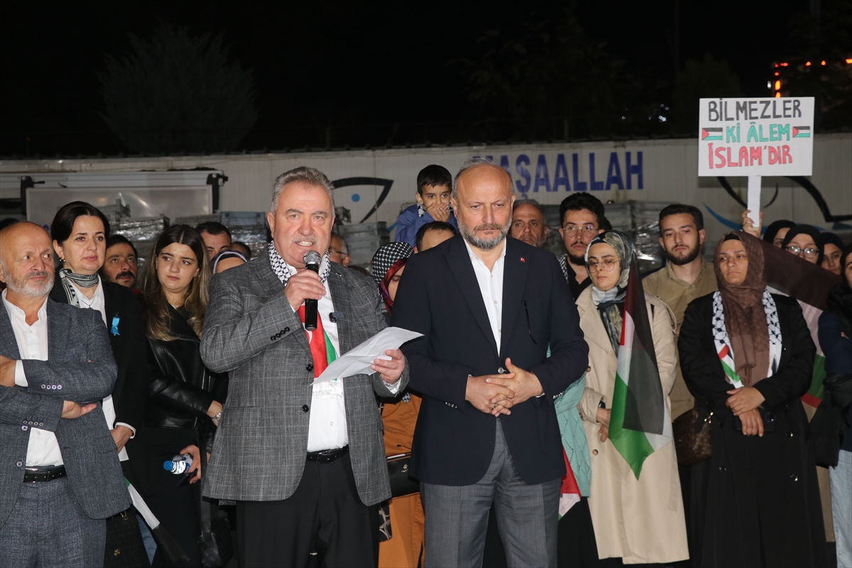 Yaklaşık iki yıldır bütün insanlığın gözünün önünde Gazze'de çok açık soykırım işlendiğine dikkati çeken Turan, "Siyonist işgalci İsrail, Filistin topraklarını işgal ediyor. Buna direnen Filistin halkını hunharca katlediyor. Gazze'de tam iki yıldır bebekler, çocuklar, kadınlar ve kardeşlerimiz katledildi. Bu zulüm ve katliam sona erecektir. Bir gün Filistin özgür kalacaktır." diye konuştu.