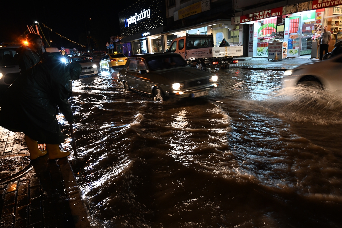 Belediye ekipleri, sağanağın yol açtığı olumsuzlukları gidermek için çalışmalarını sürdürüyor.