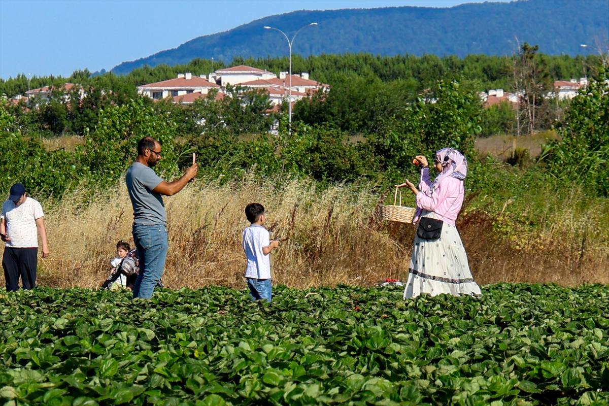 Kocaeli'nin Gebze ilçesinden çilek toplamak için gelen Şehriye Karacak, organik ürünleri almayı tercih ettikleri için burayı tercih ettiklerini söyledi.