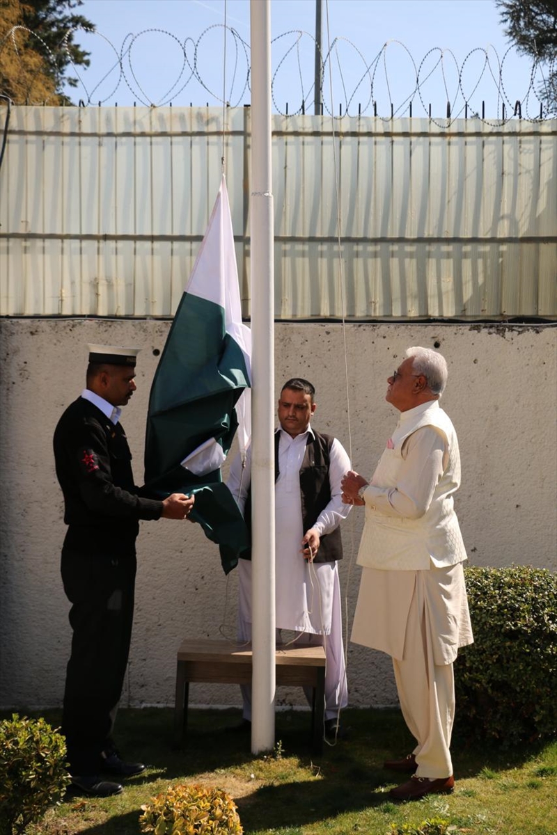 Etkinlik, ülkenin milli marşı eşliğinde Pakistan bayrağının göndere çekilmesiyle başladı.
