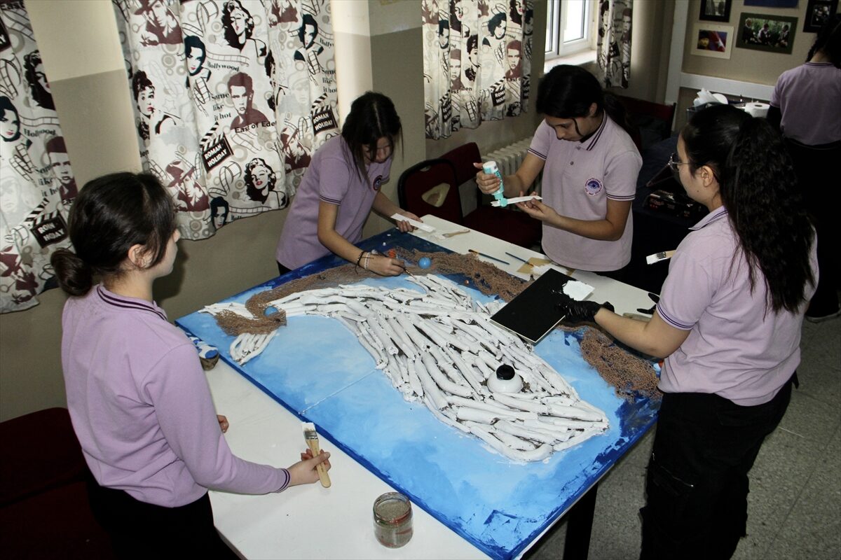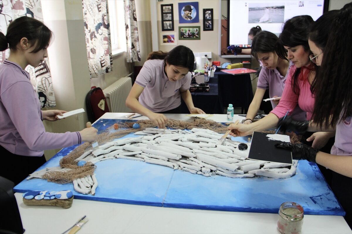 Sinop’ta ortaokul öğrencileri deniz kıyılarından topladıkları atık malzemelerle, 1992 yılında Gerze ilçesi sahilinde görülen ve uzun süre bölgeden ayrılmayarak halkın sevgisini kazanan beyaz balina “Aydın”ın rölyefini oluşturdu.